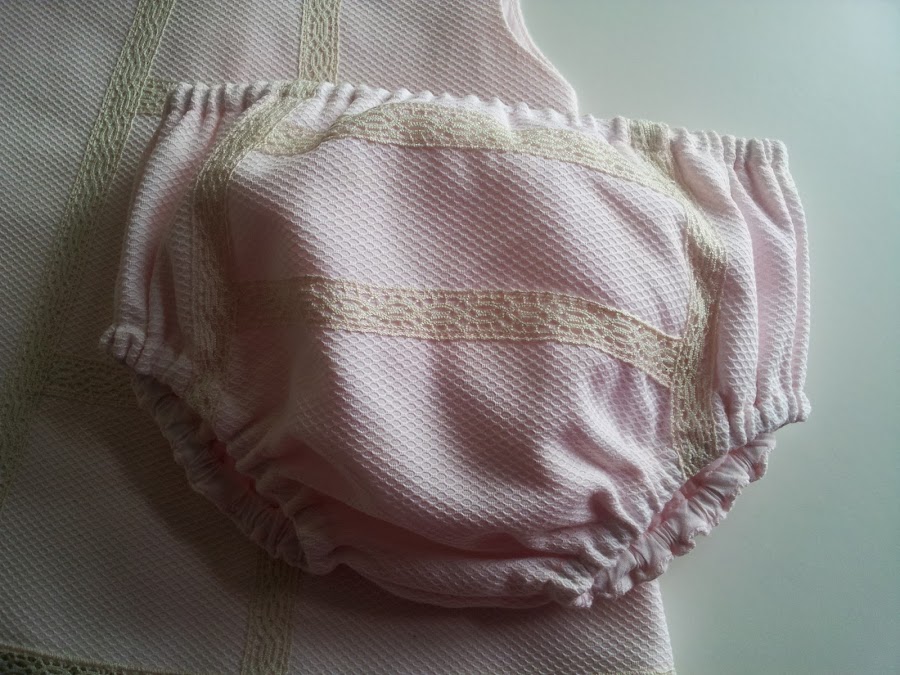 Esta vez la braguita la hice toda de gomas, mas que nada por variar y aprender otra forma de hacerla. Pero queda igual de bonita en las niñas.