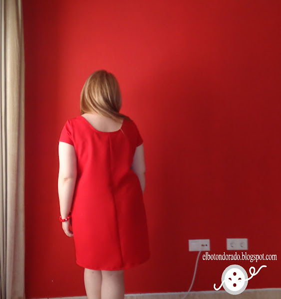 Es extravagante, para qué engañarnos, pero últimamente en sus colecciones tiene modelos ponibles y de patrones sencillos. Este vestido no deja de ser un vestido rojo, de corte recto, con pinzas en el pecho y escote profundo redondeado.