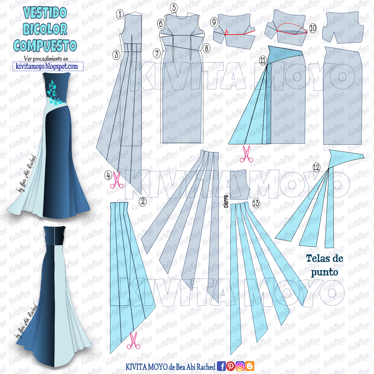 Como siempre les digo el modelo es adaptable a todas las figuras cuando se traza desde el patrón base de vestido a medida.