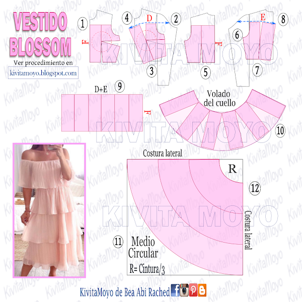 ARMADO: Cuando transformamos el escote trasladando la pinza de busto hemos ampliado esa parte en el armado le colocaremos un elástico para que se mantenga ajustado a los brazos. Por otra parte se cortara la falda medio circular por la mitad, creando de esta manera dos faldas linea A. Esto es porque se le incorporara un cierra en el lateral del vestido o sea en la costura.