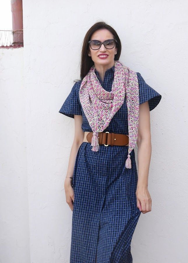 Hace un año que guardaba esta tela de popelin con ganas de hacer un camisero y después de mirar modelos del Corte de Oro, lo tuve claro. Había llegado su momento, además tenía el complemento perfecto, el chal de ganchillo que me regaló mi amiga Pili del blog El taller de Sueños de Arish