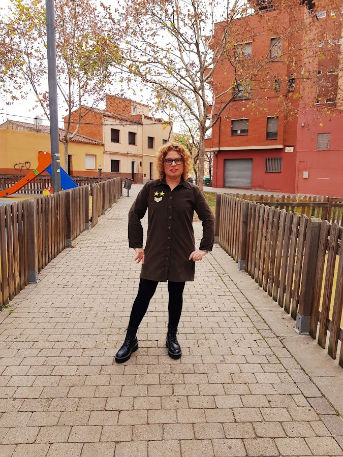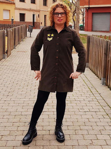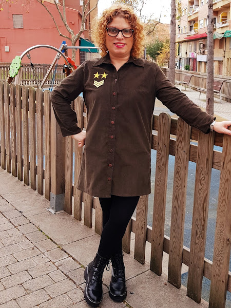 Que ganas tenia de coser un vestido camisero con aires militares para el invierno , por eso cuando vi esta tela en color verde militar o caqui no me lo pense dos veces y me la lleve a casa .