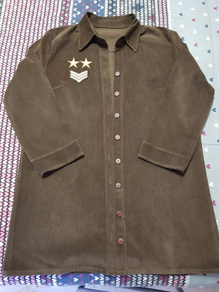 Como queria darle un aire militar al vestido le he puesto estos parches en forma de galones y estrellas que tenia guardado en casa esperando su turno .