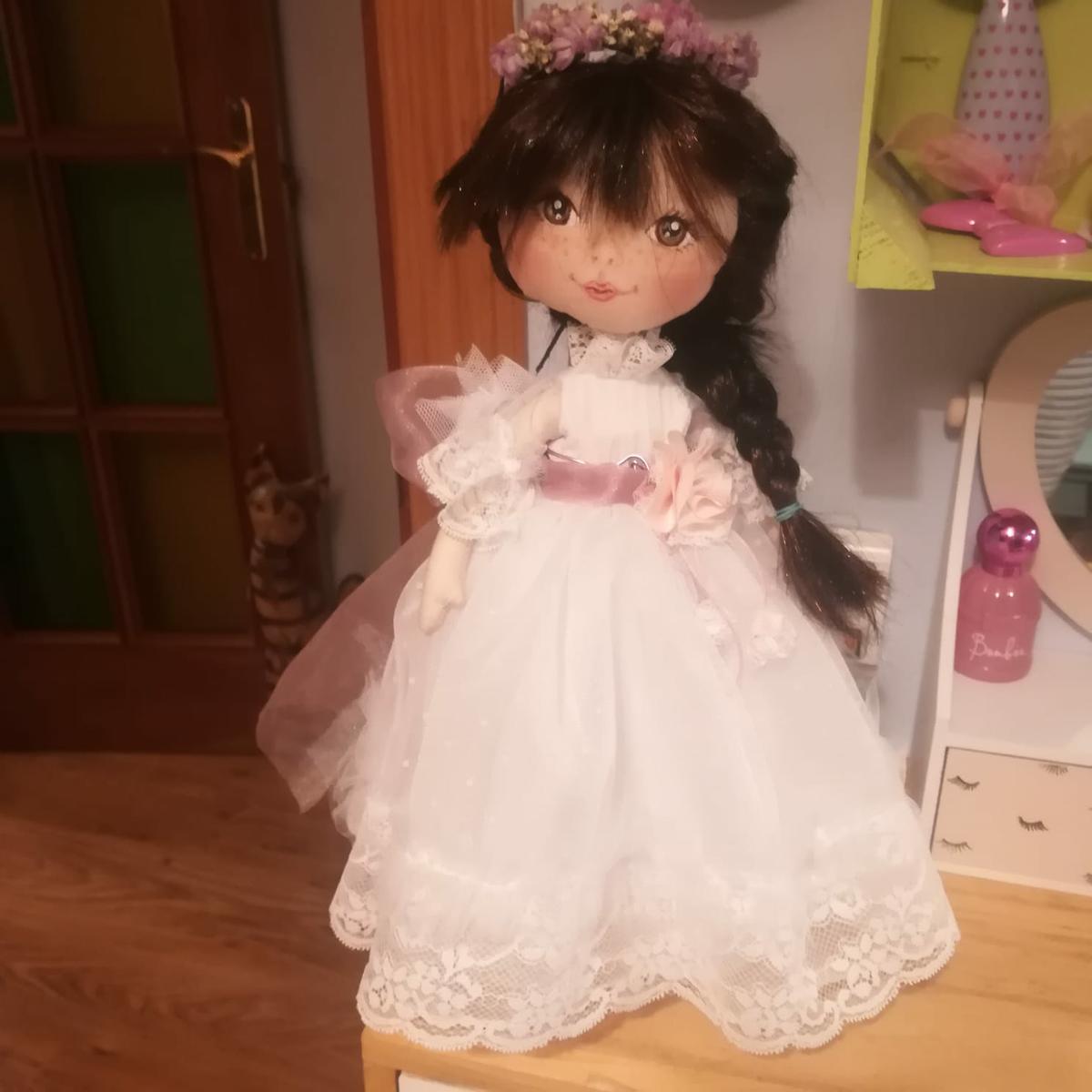 Vestido de Comunión de la Muñequita de trapo de Manuela, ( Está personalizado)