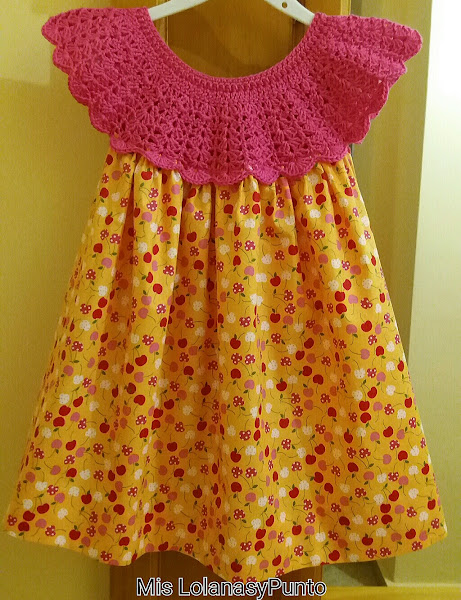 Así qué, le he hecho un vestido a mi sobrina Laura para este veranito. Lleva un canesú redondo a ganchillo, junto con una bonita y veraniega tela.