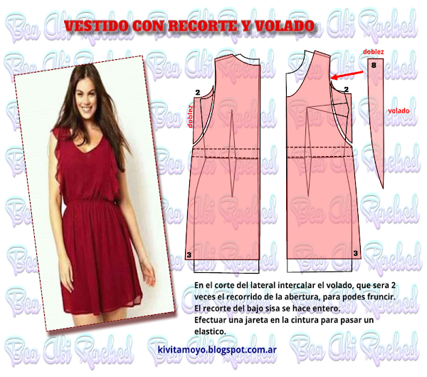 Recordar que esta diseñado sobre el patron basico de vestido. Se le añadira unos 2 y 3cm en lateral para holgura.