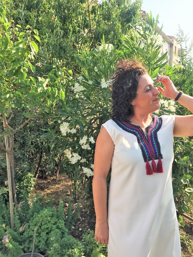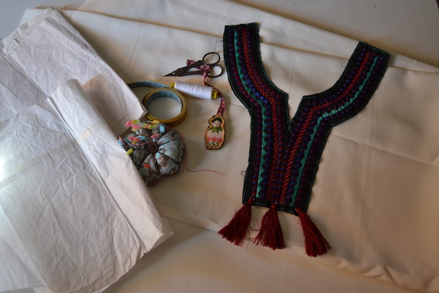 Yo voy ha realizar un vestido sencillo, en color blanco, con un patrón básico, luego aplicareñe un cuello con toque étnico de mercería noiva, que es precioso, en principio lo cogí para personalizar una camiseta blanca básica, pero luego pensé que me gustaba tanto que mejor hacia un vestido sencillo blanco, fresquito y ponía el cuello en el.