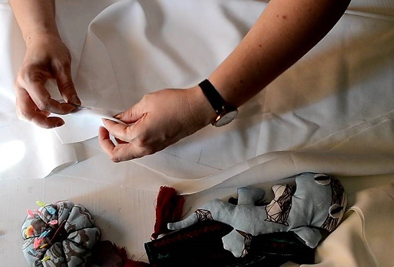 Marcamos con alfileres el largo de nuestro vestido, planchamos y cosemos con una puntada invisible.