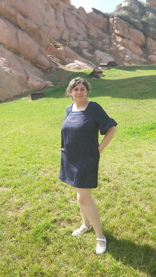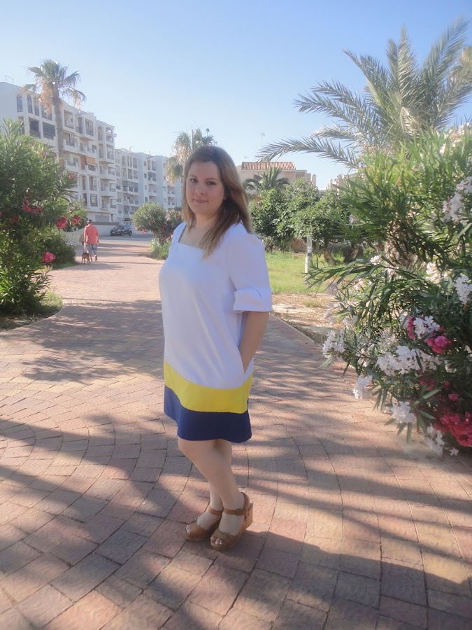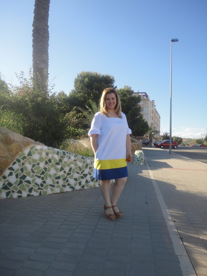 Me gustó por el escote cuadrado, porque sus mangas son raglán y por los volantes. Un vestido sencillo y original.