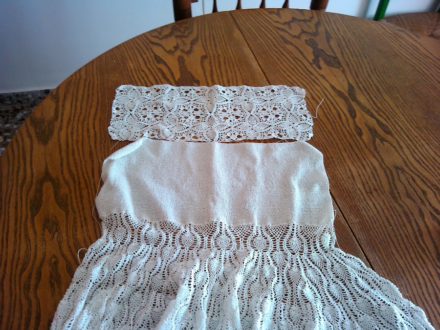 Este es el vestido que me ha estado llevando de cabeza, más aun que el bolso prenatal, este es el vestido de novia que estaba elaborando para mi hija; pero ella y su marido han decidido hacernos el regalo más bonito que nos podían hacer ... una nietecita, así que he tenido que aparcar el vestido hasta que nazca y los felices padres decidan otra fecha para el evento.