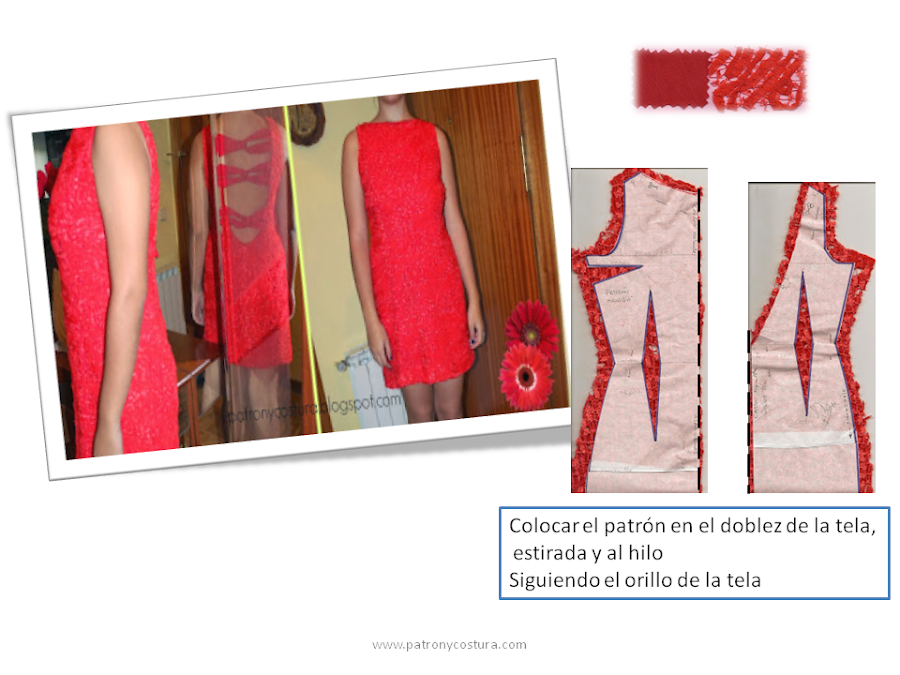 Pues bien hacemos el proceso de siempre:Hilos flojos, separar tejido y cortarlos, hilvanar y poner de prueba.Y el patrón lo utilizamos de nuevo para cortar el forro igual, pero un poco más corto (y aquí realizamos el mismo proceso). Ya que tenemos ambas partes cosidas colocamos el forro al vestido.