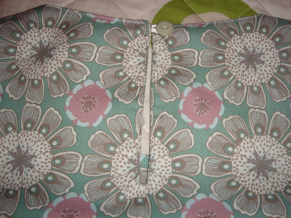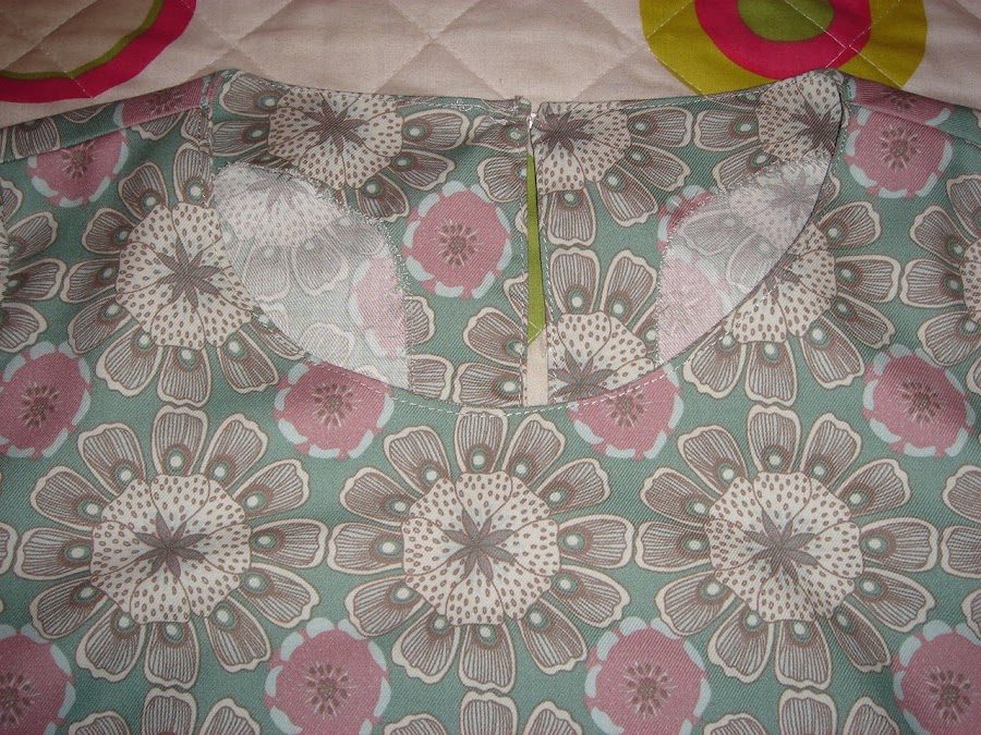 El cuello es redondo y lo he rematado con una vista de la misma tela del vestido.
