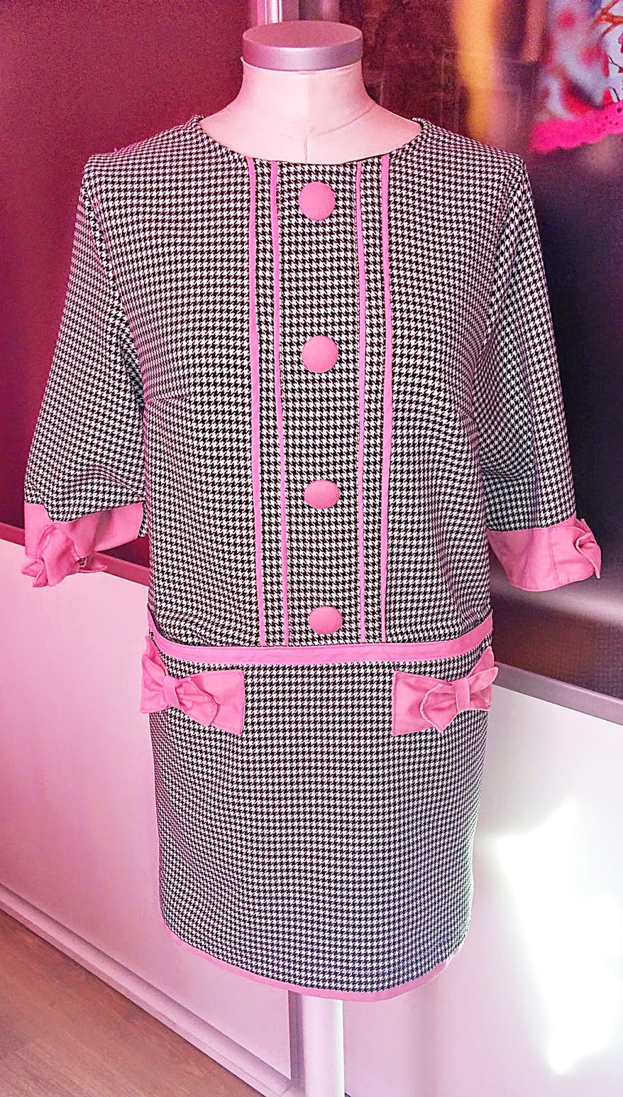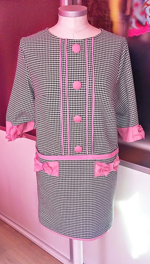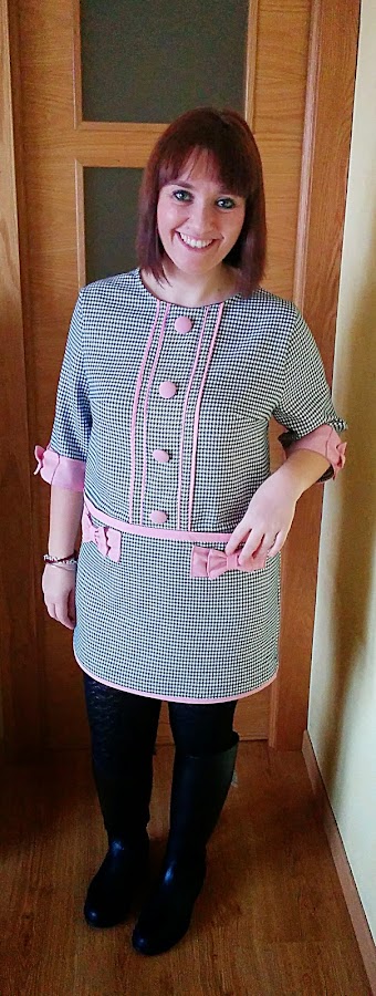 El vestido tiene un corte recto, el delantero solo lleva pinza en el pecho y en mi caso si que la he puesto pinzas en la espalda, es minifaldero con el cuello a la caja y la manga francesa, lo mas original y especial de este vestido son los detalles y la combinación de las telas. Os dejo las fotos para que lo juzguéis por vosotros mismos, no dejéis de comentármelo por favor.
