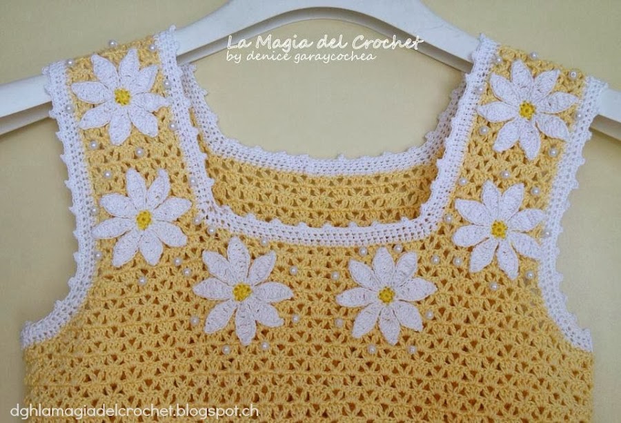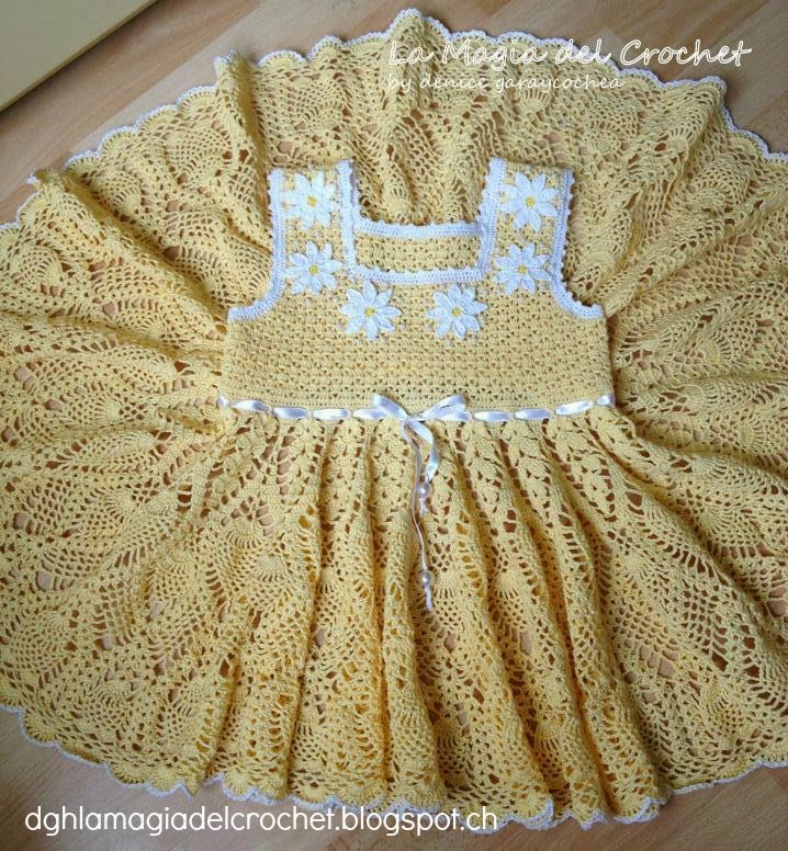 Los vestidos a crochet son una belleza, éste se lo hice a mi hija para la boda de una sobrina, el color me encantó. es muy fresco y muy de primavera. Lo trabajé con hilo delgado y con aguja N° 1,5.
