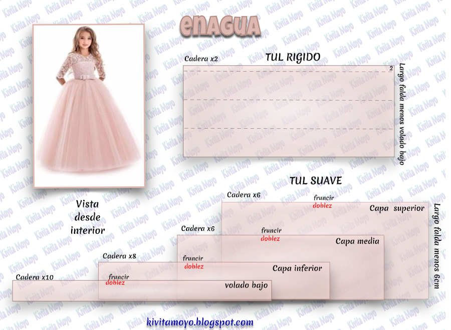 En consecuencia el largo de la enagua terminada sera 5 cm menos que la falda de tul del vestido.