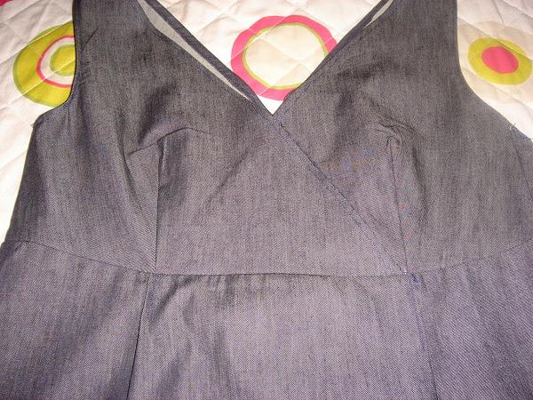 El vestido es igual de tirantes con el delantero cruzado y de corte imperio con pliegues en la parte delantera de la falda y un poco fruncido en la parte traser de la falda , lo que no lleva es forro la falda al ser de tejido denim no hace falta.