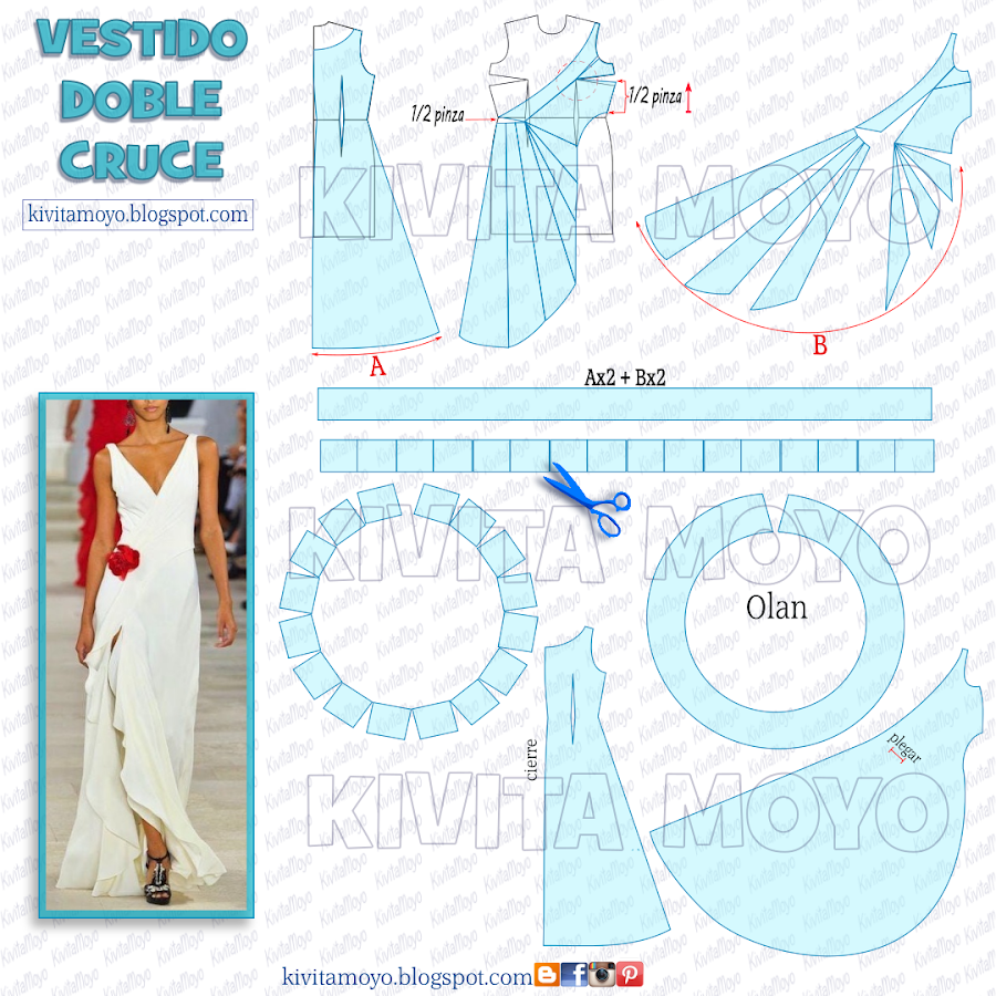 Nota: Este olan tambien se puede resolver trazando una falda circular. O sea en un cuadrado exacto que mida de lado el ancho del olan deseado mas el calculo del radio que se obtiene dividiendo entre 6 la medida de A+Bx2