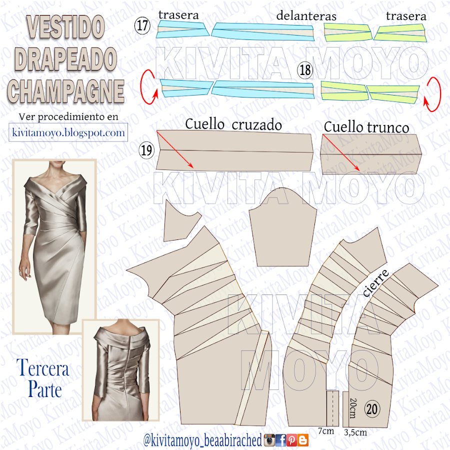 En esta oportunidad el modelo tiene un detallado proceso de transformación y sin ninguna duda la confección es muy elaborada. Es aconsejable tener practica en la confección de gala o alta costura.