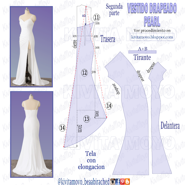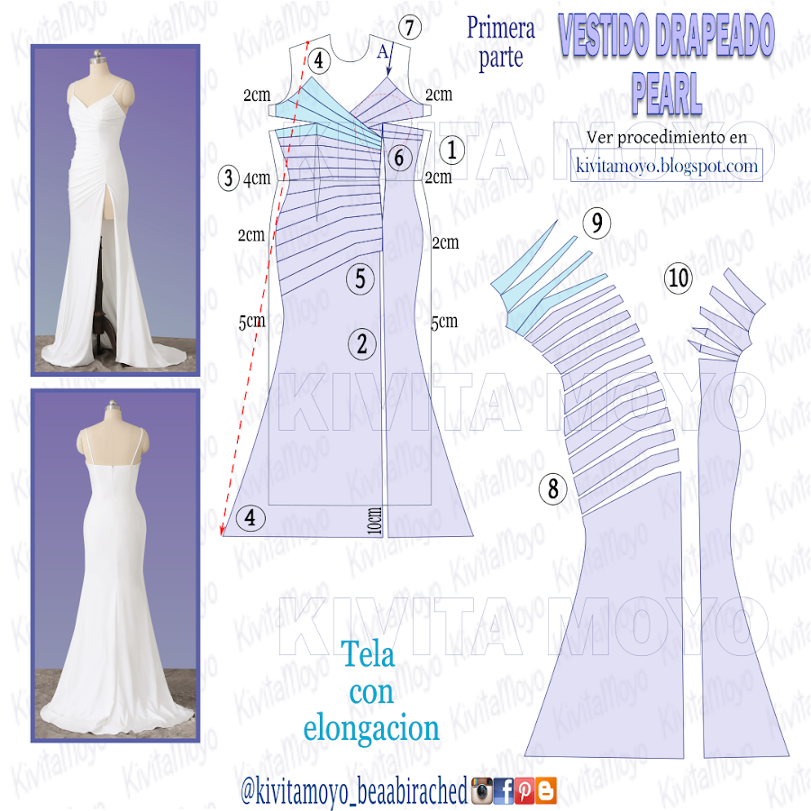 Recuerda que el modelo se realiza desde el trazado de patrón básico a medida, que luego será una plantilla de diseño. Puedes ver la publicación para su trazado aqui Patron Basico de Vestido