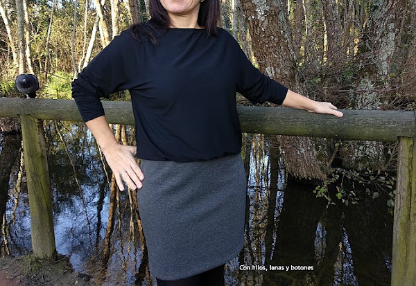 Para la falda tampoco hay patrón. En este caso seguí las indicaciones de Miscelánea DIY para hacer una falda tubo con tela elástica.