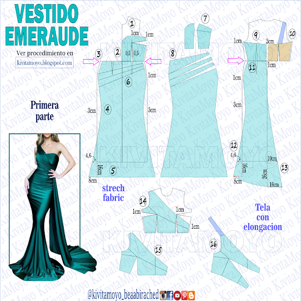 Como siempre les digo se diseñara la prenda desde el básico de vestido previamente trazado a medida. Y las dimensiones que les sugiero en este esquema son una sugerencia, y depende de sus preferencias o necesidades.