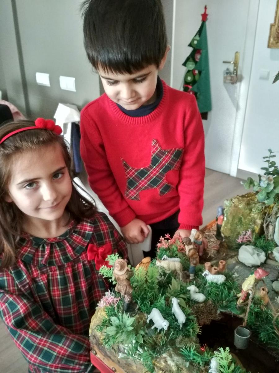 Para llevar al hermano a juego le he hecho una aplicación en un jersey con la tela del vestido, fácil, rápido y resultón.