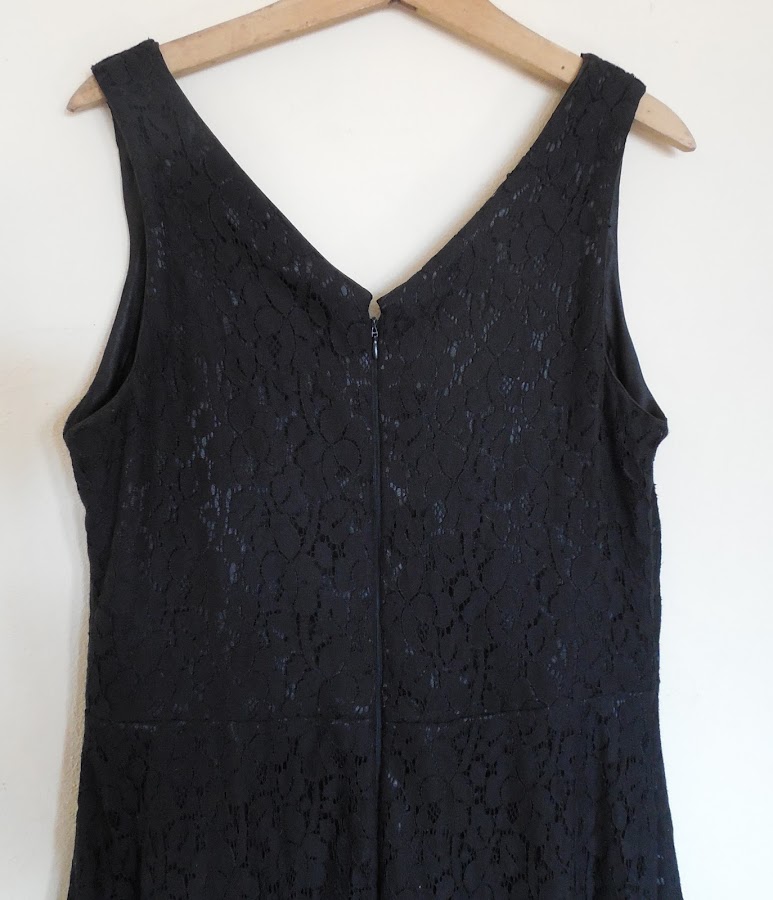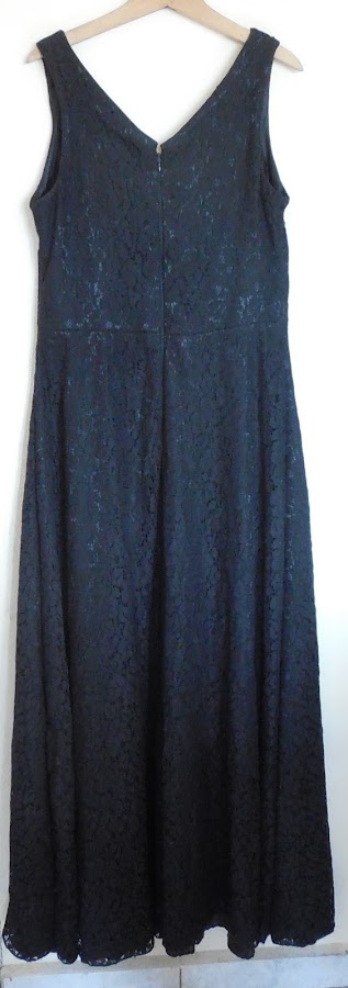Utilice 2 metros justos de encaje y para el forro crepe satén negro. Lo compre en ML telas de Montevideo. Es una tienda muy linda que tiene variedad de telas para fiesta y a un precio razonable…