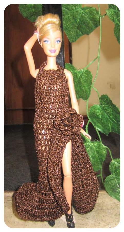 Lindo vestido tejido a crochet con hilo de fantasía francés, la Barbie de tu nena lucirá elegante en sus juegos de glamour... :)