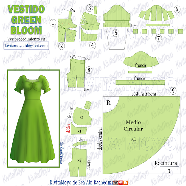 Dibujar una falda medio circular en un cuadrado exacto que mida de lado la suma del largo deseado de la falda, mas el calculo del Radio, obtenido de la división entre 3 de el contorno de cintura. Sigueme en Instagram @kivitamoyo_beaabirached