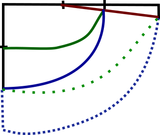 Luego hice dos curvas, una que une los 11 centímetros con la marca de 9 y que se corta en la línea roja (línea verde). Y mi otra curva que igual se corta en la línea roja y que une los 11 centímetros con los 18 (línea azul).
