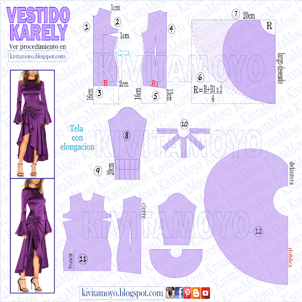 La prenda estará confeccionada en tela de punto con elongación, lo que favorecerá aun mas la caída de los olanes y el drapeado.