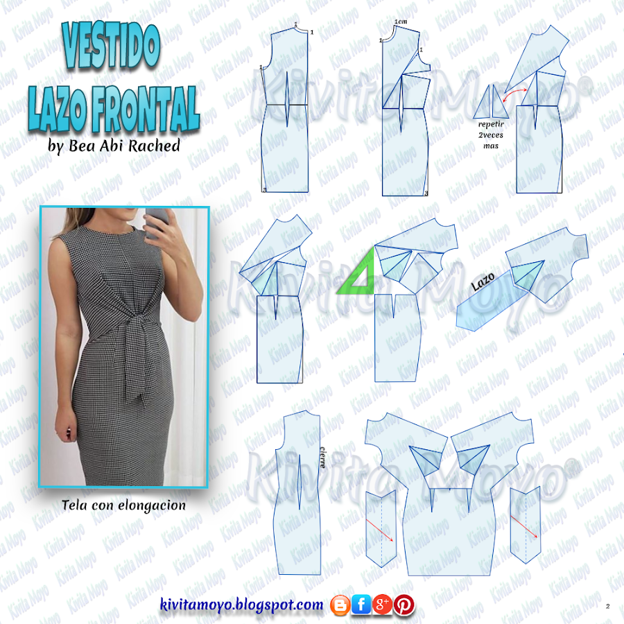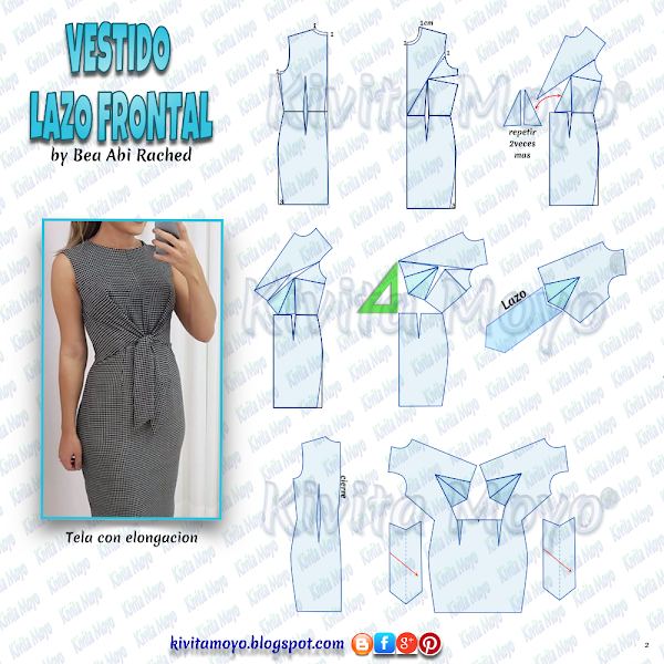 Trazar una pieza en forma de fecha copiando el pico resultande de la inclusion de los triangulos. Esta pieza luego se cosera a la saliente del patron como se ve en la imagen, y se plegara sobre si encarando los derechos y se unira, para crear el lazo. Compensar con tela el espacio que se genera en la apertura de la cintura dese el lateral.