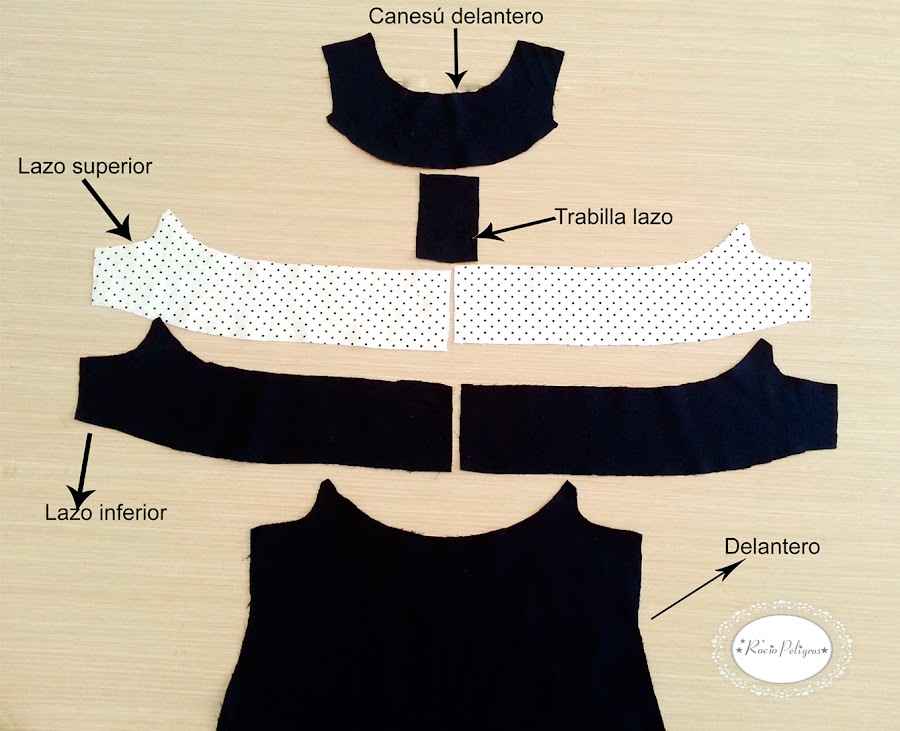 La pieza número 3 es el LAZO Superior, va en tejido de contraste, cortamos 2 piezas.