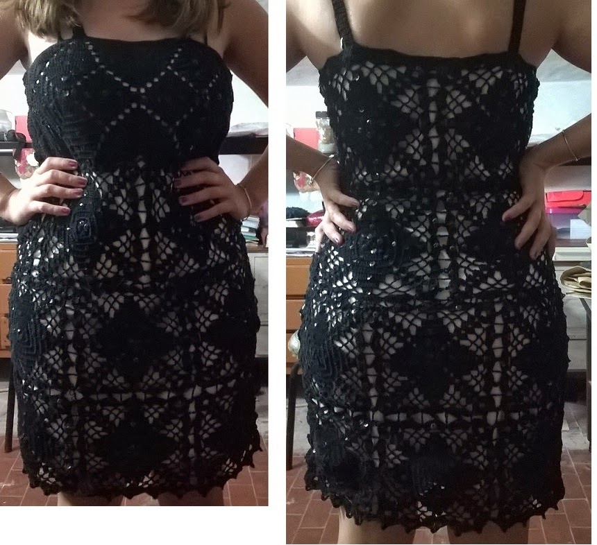 VESTIDO NEGRO CROCHET CON LENTEJUELAS NEGRAS.