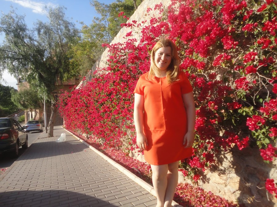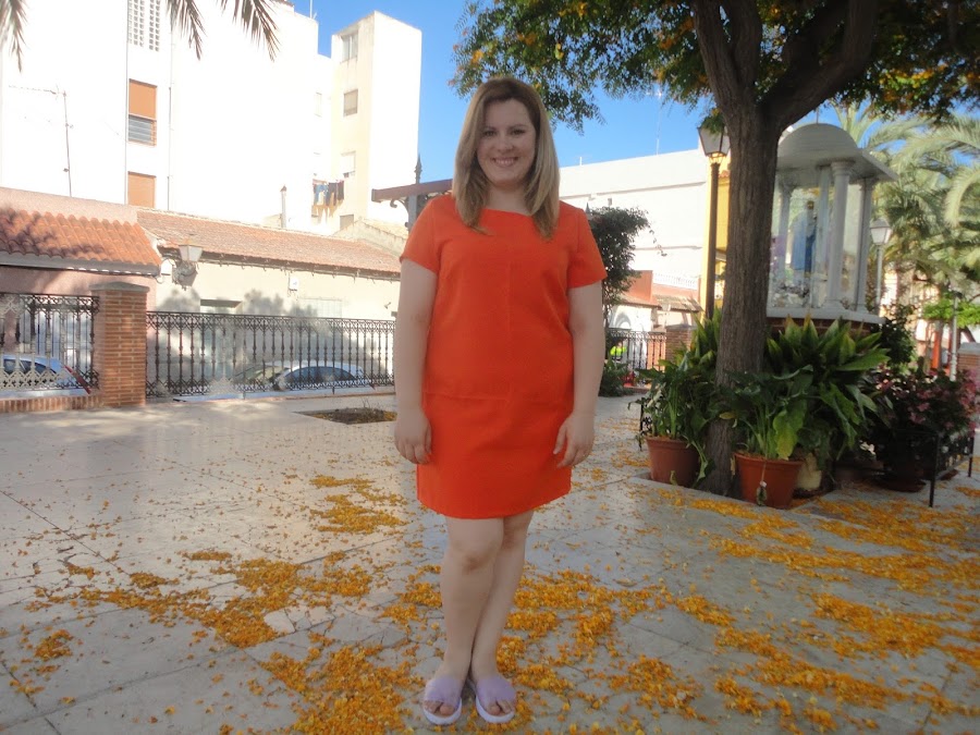 Hace tiempo le vi con un vestido naranja que... simplemente me enamoró. Es sencillo, pero no sé por qué me quedé prendada de ese vestido y empecé a buscar tela naranja por todas partes.
