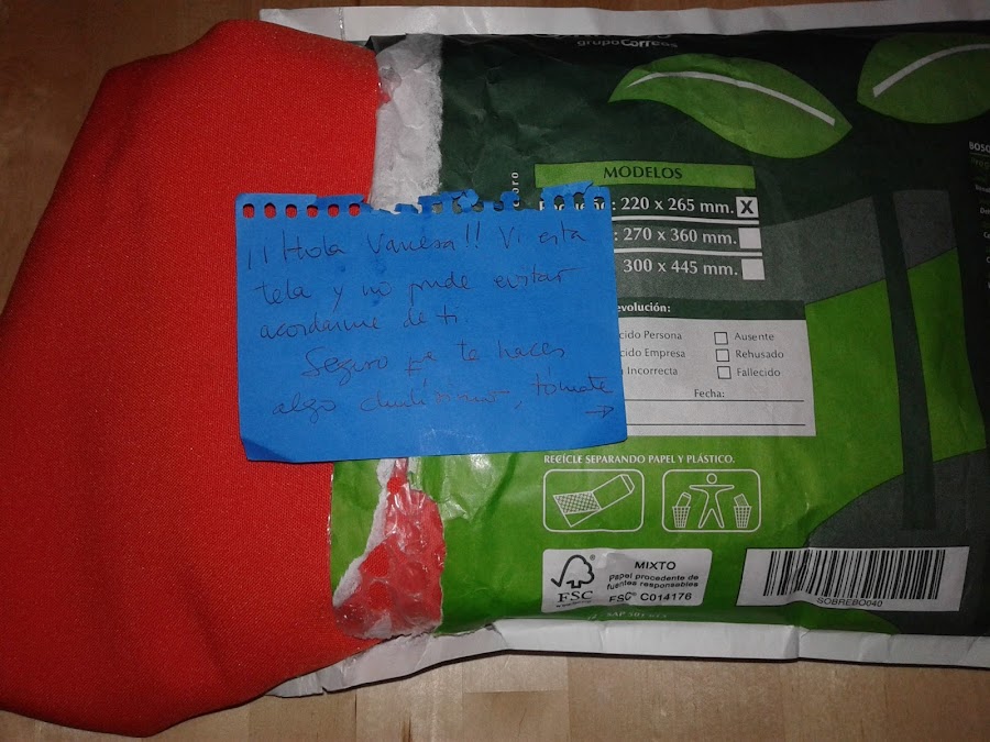 ¡Me volví loca! Tela de color naranja para que me hiciese un vestido como el suyo, ¿habré sido demasiado pesada con mis comentarios alagando su vestido?