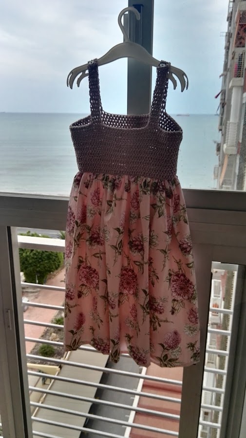 Así que os voy a enseñar un vestido que le hicimos entre mi madre y yo a mi hija mayor y que es casi casi como este ( podéis verlo clicando en el enlace) .