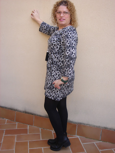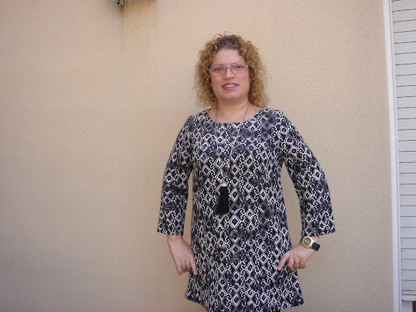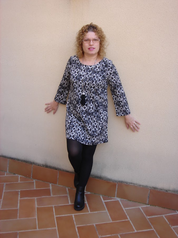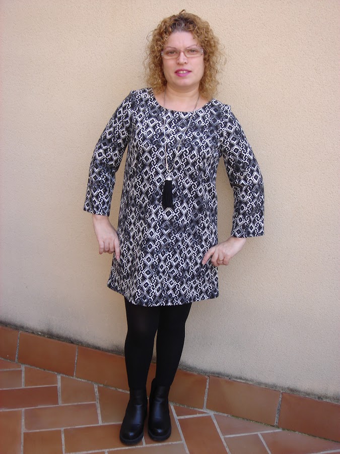Y creo que este vestido cumple todos los requisitos , el tejido tiene un dibujo que me gusto en cuanto vi la tela en la estanteria de la tienda y luego tiene un corte holgado que lo hace muy comodo de llevar.