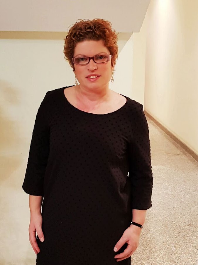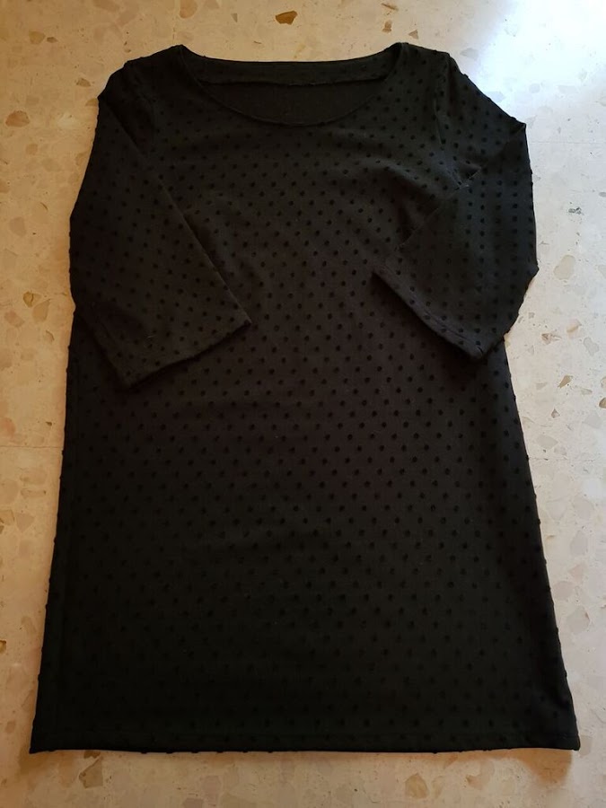 Como veis el vestido es bien sencillo , corte recto , pinzas en el pecho y manga 3/4 o francesa..