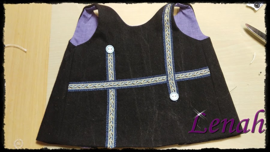 Le damos la vuelta y cerramos los lados,como os enseñe,cada uno por su lado.....acordaros de planchar...cuando cosemos los hombros...cuando cosamos cualquier cosa.....plancha.....Le puse unos botones para tapar las terminaciones de la pasamanería