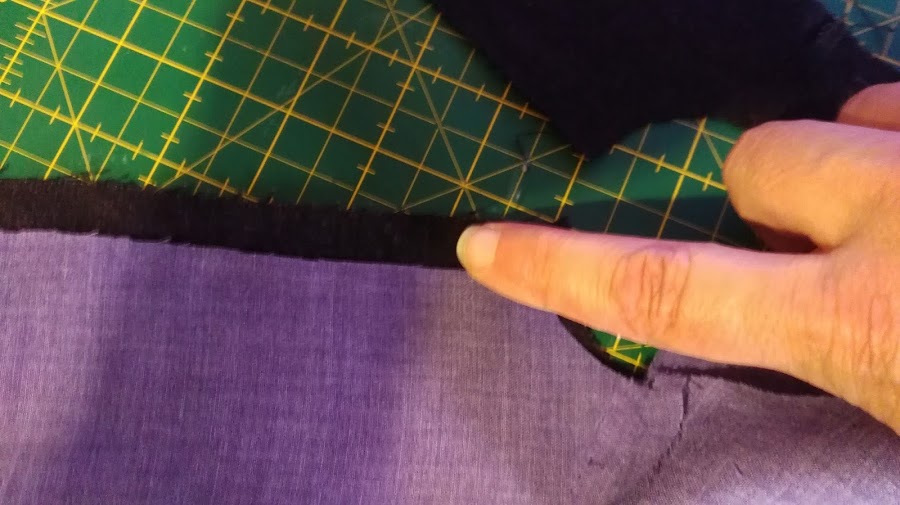 Lo puse justo al filo del doblez de la tela