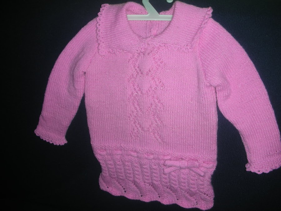 Esta vez les traigo un modelito distinto, es un vestidito para bebé, tejido de lana a dos agujas