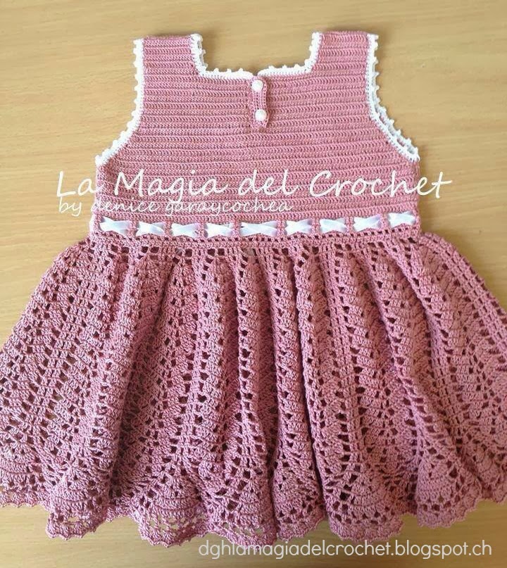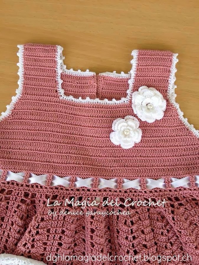 Este otro vestido es parecido al VESTIDO DE PRIMAVERA de la anterior entrada del Blog, en realidad para la parte superior he usado el mismo esquema que lo encuentran AQUI, sólo que he cambiado el punto, en este uso el Punto Medio Alto en todo el pecho y la espalda. Las medidas ya saben que las tienen que adecuar a la edad de la niña, ir aumentando o disminuyendo puntos.