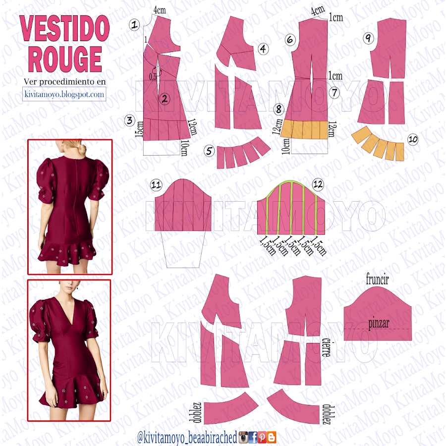 Cortar por las líneas y separar las piezas entre si 1,5cm . A 5cm de la base se le practicaran a la manga mínimos pliegues que se sostendrán con algunas puntadas desde el derecho de forma transversal creando el ajuste y el efecto farol junto con el frunce de la copa. Deja tu comentario con tus consultas de esta leccion.