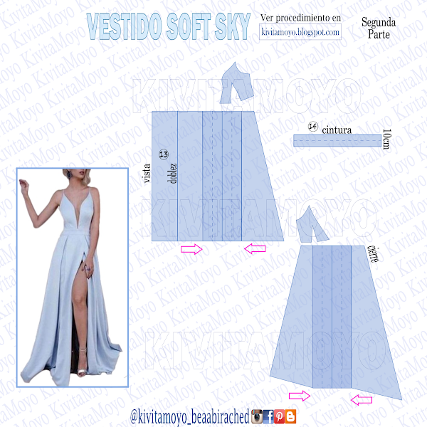 Siguiendo los pasos del esquema lograran reproducir este diseño dibujado a partir de su vestido básico largo, que previamente habrán trazado a medida.