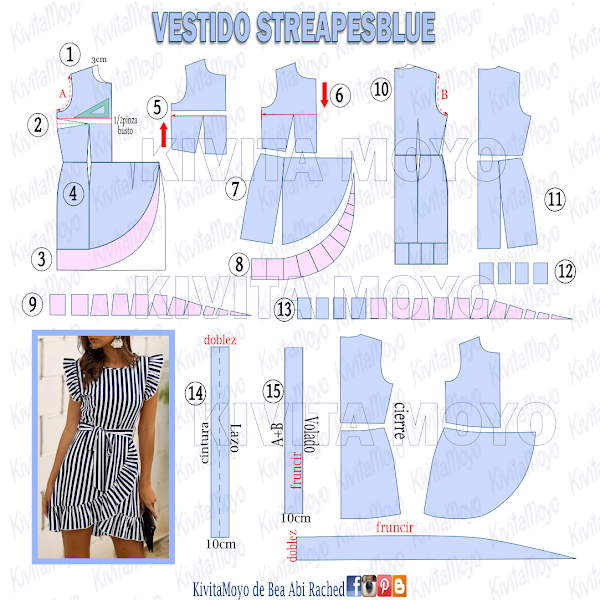 Lo que ven en el esquema no son patrones por talles que se descargan, sino que es la representación de los mismo en una lección de transformaciones de diseño. Ustedes solo deben seguir los pasos, para obtener el modelo en su mesa de trabajo.