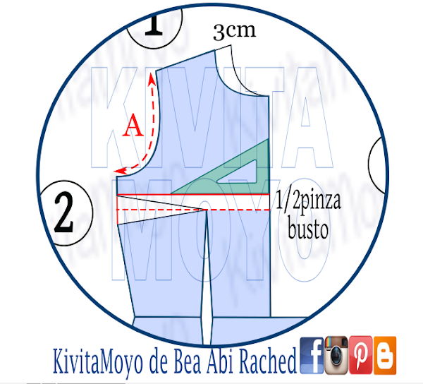 Precisamente en esta publicación se puede ver una de las maneras que se puede transformar el patrón base para esta modificación en telas planas. He hecho una ampliación de ese detalle del esquema, que verán en otra imagen extra, mucho mas ilustrativa.