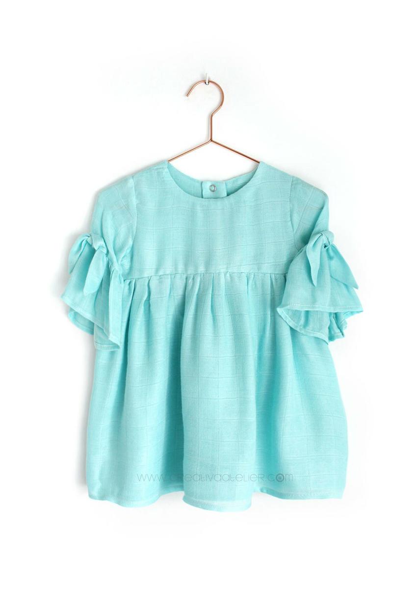Para finalizar nuestro vestido de muselina, vamos a hacer dos pequeñas moñitas para decorar las mangas.