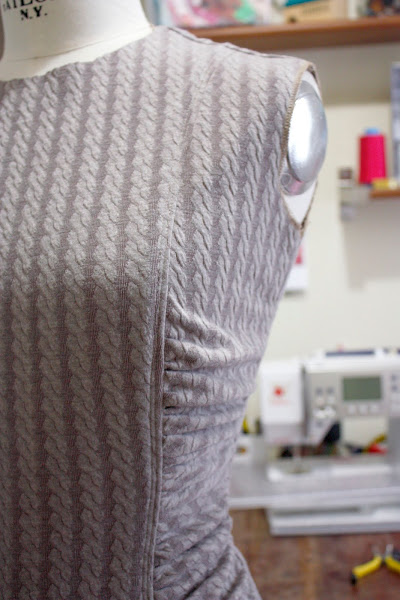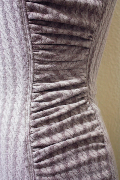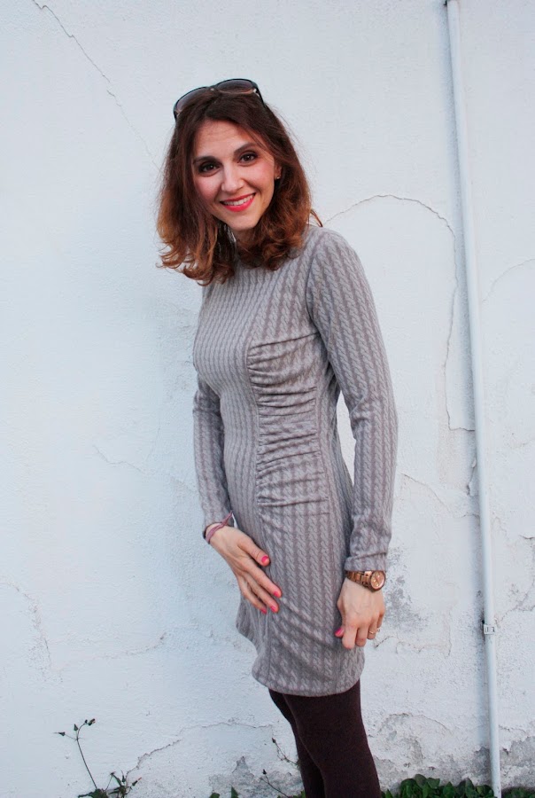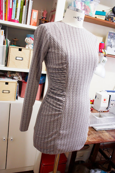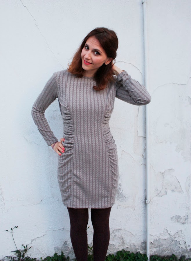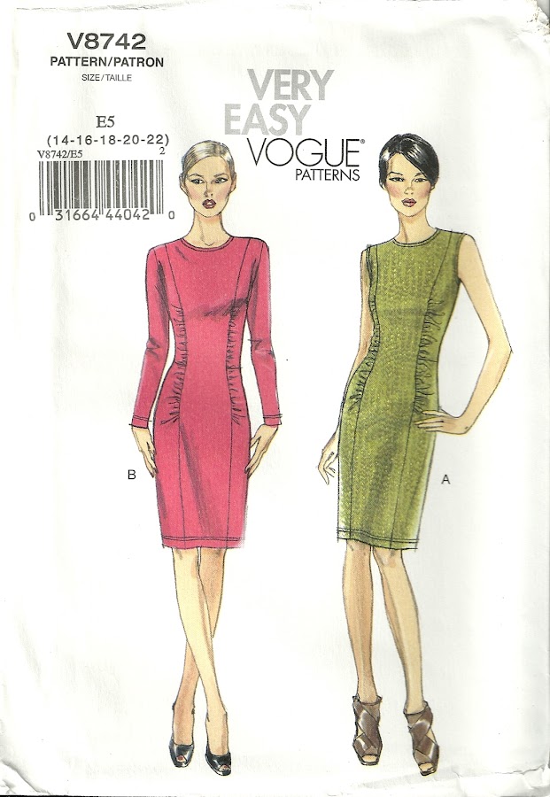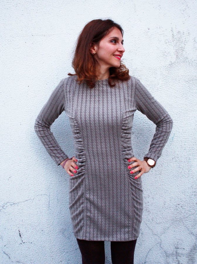 En el post de hoy os vengo a enseñar mi último vestido, el VOGUE V8742 es un vestido para hacer con telas de punto elásticas y yo para el mio he elegido este punto roma finito con dibujo y un tacto maravilloso. Es una tela que compre en TEJIDOS JULIAN SÁNCHEZ aqui en Madrid, (ya os hable de esta tienda en el post de TIENDAS DE TELAS). Lo más complicado han sido los frunces de las piezas laterales, conseguir que quedaran bien repartidas por lo demás bastante fácil de coser. Puños y bajo con doble dobladillo y pespunte decorativo. Y escote rematado con un biés de la propia tela y metido hacia dentro. Espalda con pequeña apertura y cierre metálico.