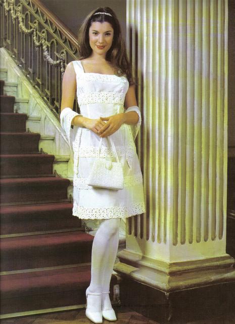 Y este por si te da el arrebato y te lanzas al ganchillo cual loca y quieres solucionarlo con tela y una puntilla puesta en varios sitios del vestido. Con este seguro que consigues un look de lo más niña buena y las grasas se lo piensan antes de acompañarte.